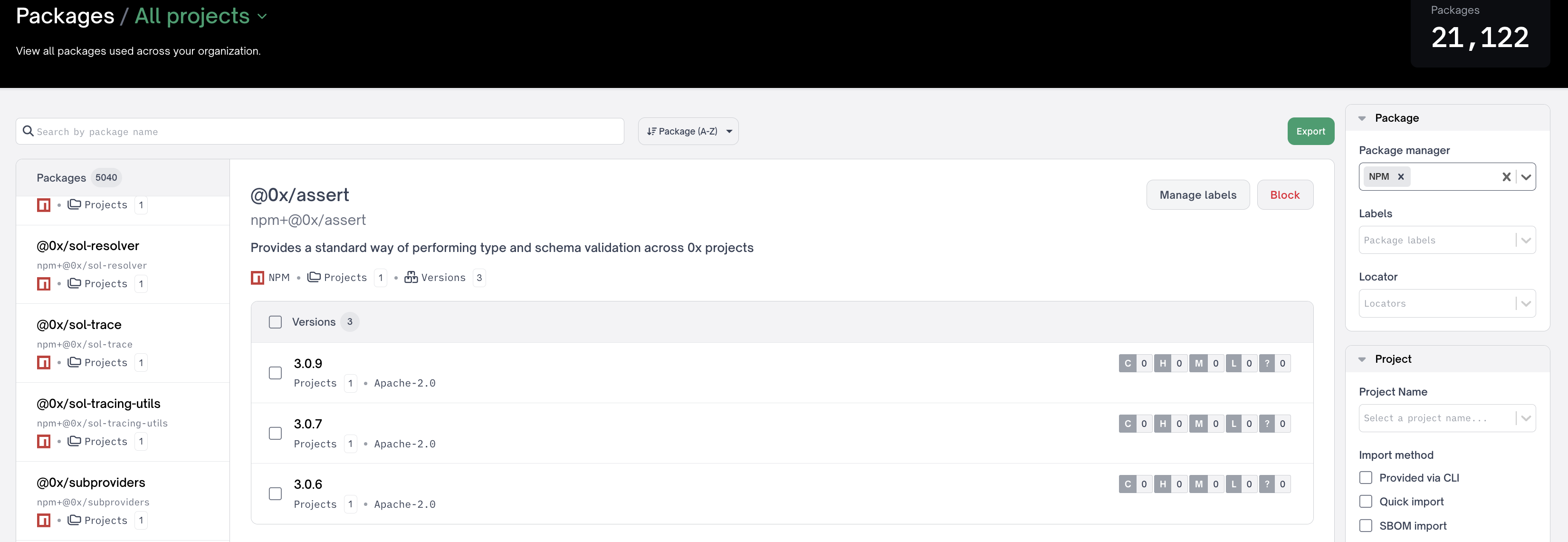 Or select specific package versions to block