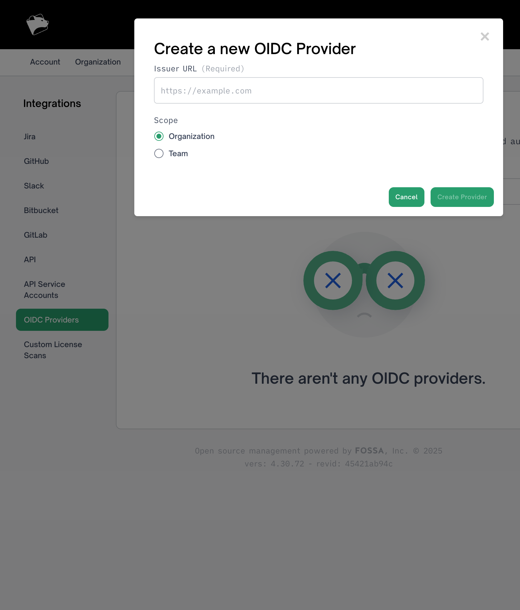 FOSSA automatically discovers the provider's JWKS configuration from {issuer}/.well-known/openid-configuration.