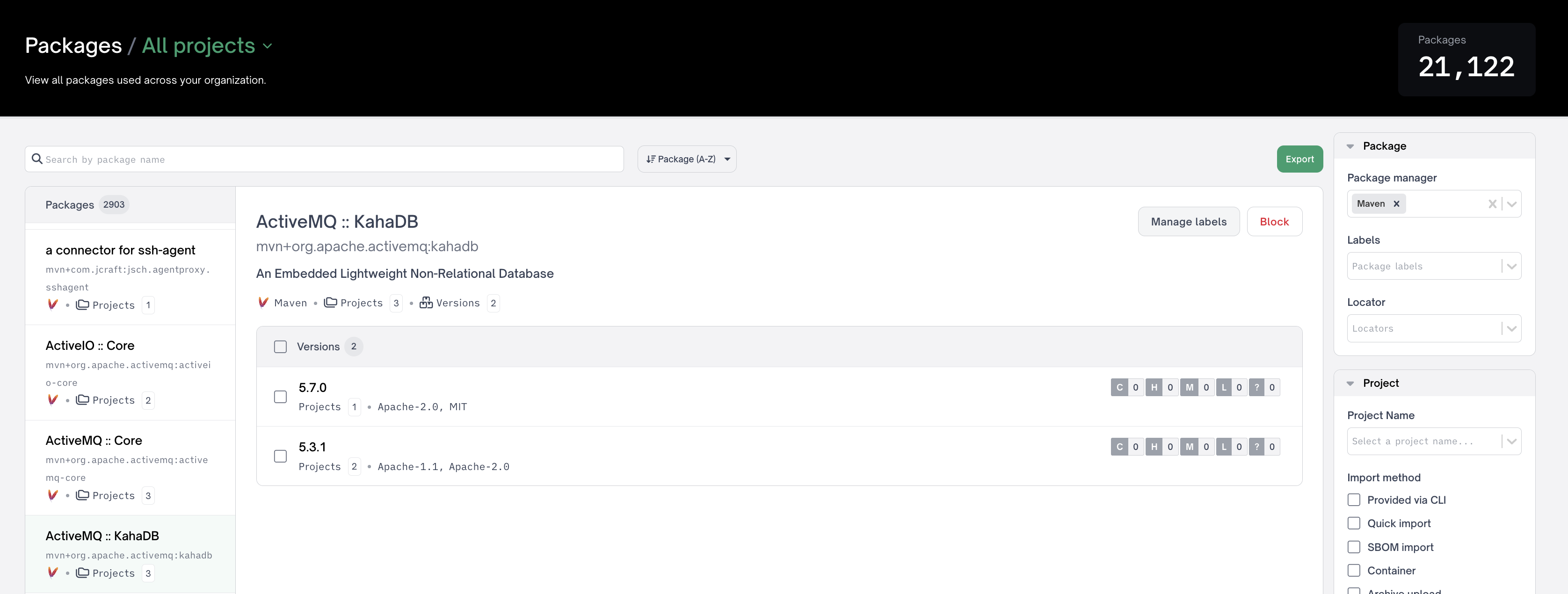 feature at the top-level navigation a FOSSA user will have access a global package inventory across their entire organization.